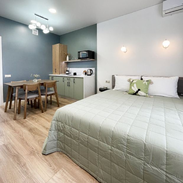 Двухместные апартаменты с балконом и с видом на город двуспальная кровать