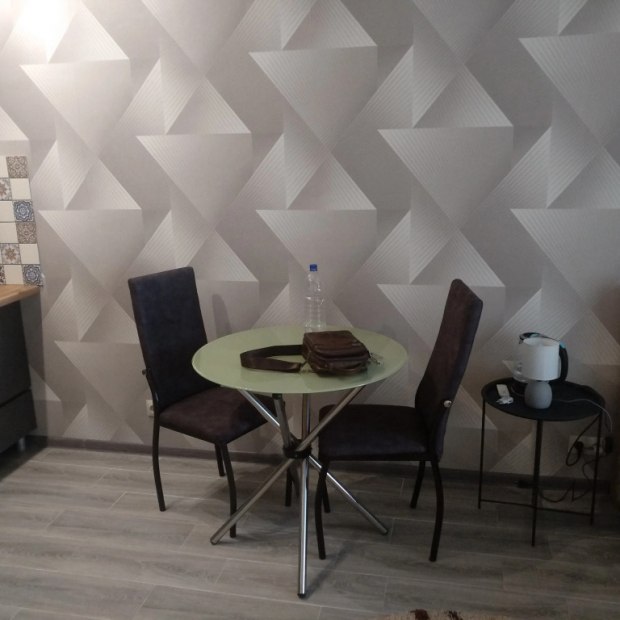 Квартира «Уютная студия» находится в Волжском, в жилом комплексе «Атмосфера». С одной и с другой стороны дома расположены детские площадки, по периметру дома — газон. В шаговой доступности аквапарк, продуктовые магазины, кафе, мойка машин, парковочные места для автотранспорта и другое. Территория огорожена по всему периметру забором. Студия с ремонтом площадью 27 кв. м. находится на 6 этаже 17-ти этажного дома. В доме есть грузовой и пассажирский лифт, консьерж, система видеонаблюдения поэтажно. Въезд в жилой комплекс осуществляется через шлагбаум. Квартира мебелирована всем необходимым для проживания. Работает интернет. В ванной комнате установлены новая ванна, стиральная машина, умывальник. В коридоре стоит шкаф. В комнате есть зона кухни с кухонным гарнитуром, электроплитой, чайником, посудой, микроволновой печью и зона отдыха. В зоне отдыха двуспальная кровать, стеклянный столик, стулья, раскладной диван, телевизор, сплит-система, холодильник, шкаф-пенал. Также в квартире есть лоджия площадью 4.4 кв. м. с видом во двор и панорамными окнами.