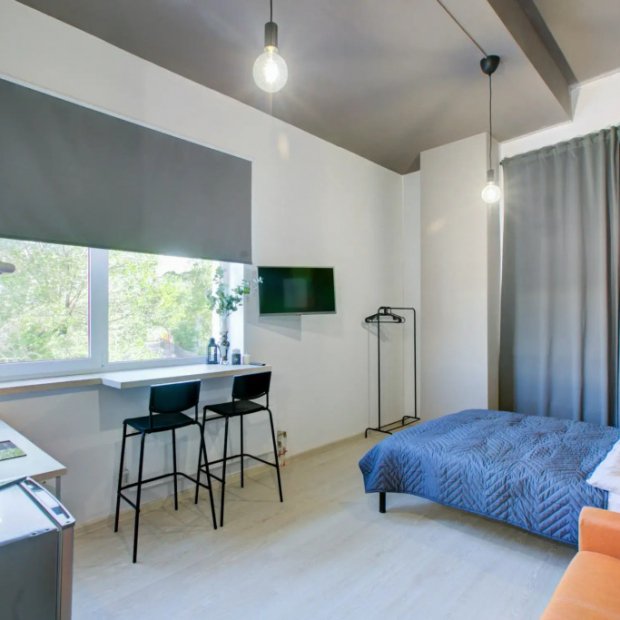 Квартира «Домиго Студия Pядом с Проспектом Революции» находится в Воронеже. Рядом с квартирой — проспект Революции, набережная, парки Орлёнок и Динамо, железнодорожный вокзал, онкологический диспансер, ВГУИТ, Петровский сквер, медакадемия, рестораны, кафе, магазины, Благовещенский собор, дом Кантонистов, дом Мягкова, Введенская церковь, дом-музей Дурова. В квартире есть двуспальная кровать и двуспальный диван. Гостям предоставляются постельное белье, полотенца. В комплект белья входят две наволочки, простынь, пододеяльник, а также два банных полотенца и одно полотенце для рук. В распоряжении гостей ЖК-телевизор со Smart TV, высокоскоростной интернет WI-FI, кондиционер, фен, полностью оборудованная кухня.