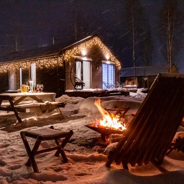 Частный дом «В Грин Лаундж» находится в Якунино, в коттеджном посёлке Грин Лаундж, вблизи Истринского водохранилища в окружении берёз. Дом располагается в 60 км от МКАД по Новорижскому или Волоколамскому шоссе. На общественном транспорте можно добраться электричкой с Курского, Рижского вокзалов и промежуточных станций до станции Новоиерусалимская, далее — на такси. В пешей доступности располагаются детские и спортивные площадки, лес и Истринское водохранилище. На автомобиле можно добраться до обустроенных пляжей с водными активностями, до конноспортивного клуба с кафе, откуда можно любоваться лошадями. Также в округе располагается Новоиерусалимский монастырь и музейно-выставочный комплекс «Новый Иерусалим», гостиница «Мистраль» с рестораном, спа, бассейном, продуктовые магазины и супермаркеты, работают доставки из ближайших ресторанов. В посёлке есть банные комплексы. На автомобиле также можно добраться до ресторанов и до стильного придорожного кафе. Неподалёку есть мясная лавка. Дом подходит для размещения до 6 гостей. В частном доме можно встретить Новый год и Рождество, провести школьные каникулы, поработать удалённо, заняться творчеством, устроить свидание, семейный праздник, или просто отдохнуть. В доме есть две спальни с мягкими кроватями одна 160×200 и две 90×200, гостиная-кухня с ортопедическим диваном 155×200 и панорамными окнами с видом на дворик и освещаемую огоньками прогулочную аллею. Собственный двор огорожен невысоким 3д-забором, который не мешает обзору окружающего вида и не нарушает общую концепцию безбарьерной среды, но защитит питомцев от побега за территорию. Вечером гости могут послушать старые пластинки, поиграть в настольные игры, насладиться сборкой деревянного пазла — «Поцелуя» Густава Климта, или посмотреть фильм по Смарт-ТВ или погулять по освещённой аллее. Для детей есть отдельная комната с вигвамом, раскрасками, книжками, мягкими подушками и игрушками. Для самых маленьких гостей есть складной манеж-кроватка, стульчик для кормления. Дом украшен множеством гирлянд и источников освещения. Для комфорта гостей имеется посуда на 6 персон, посудомоечная машина, холодильник, морозильная камера, капсульная кофемашина Nespresso, духовой шкаф с функцией микроволновой печи, электрическая плита, тостер, чайник, минимально необходимый набор продуктов — масло, сахар, соль, приправы, чай. Предоставляются полотенца, мыло, шампунь, гель для душа, кондиционер, зубные наборы, фен, тапочки. Для удобства в быту есть кондиционер с функцией обогрева — если на улице не ниже -7, управление температурой обогрева кварцевых конвекторов — установлены терморегуляторы, стиральная машина с функцией сушки, утюг, гладильная доска, сушилка, пылесос, аптечка. Для отдыха на улице есть ухоженный газон, терраса с мебелью, подвесные качели, гамак, зона барбекю с костровищем, деревянными креслами-шезлонгами, мангалом, также решётка, шампуры, уличный фонарь, настольные сенсорные лампы. Имеются удочки — рядом есть пруд с рыбой. У дома есть собственная парковка.