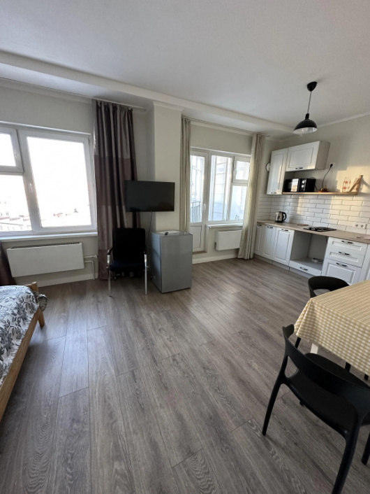 Студия с балконом и с красивым видом из окна