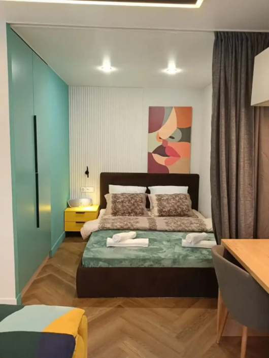 Двухместная студия с балконом двуспальная кровать