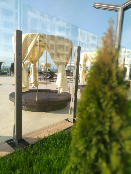 Апартаменты в жилом комплексе «Резиденция у моря» находятся в Зеленоградске, на первой линии Балтийского моря. Спуск к морю расположен напротив выхода из жилового комплекса, расстояние до пляжа Западный составляет 50 м. Дом находится на закрытой территории, с круглосуточной охраной и видеонаблюдением. Гости, путешествующие на автомобиле, могут воспользоваться бесплатной парковкой. Возможно предоставление услуги самостоятельного заезда. Апартаменты с лоджией подходят для размещения четырёх гостей. Для удобства гостей в спальне имеется двуспальная кровать с ортопедическим матрасом. В гостиной — раскладной диван для двоих человек, телевизор с кабельными каналами и выходом в интернет. Зона кухни оснащена, имеется полный набор кухонной и сервировочной посуды. В распоряжении гостей: кондиционер, холодильник, чайник, электрическая варочная плита, утюг, пылесос, шкаф в коридоре. В ванной комнате с душевой кабиной имеется гигиенический душ, установлена стиральная машина, имеется фен, средства гигиены, полный комплект полотенец, сушилка, гладильная доска. Высота потолков в квартире — 3 м.