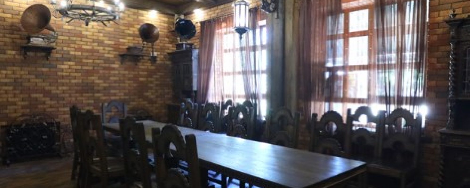 На территории кафе Del Mar имеется необыкновенно изысканный, стилизованный под средневековье банкетный зал, где Вас порадует романтическая, таинственная обстановка. Мягкий свет свечей и жаркое пламя камина, столовая мебель, выполненная из массива дуба, шкафы завезенные из Франции (исполнение - провинция Бретань, 1884-1905 гг.), а также уникальная коллекция из 17 граммофонов (исполнение - Европа, Америка, 1905 г.) - всё это предстанет перед Вашим взором, создавая ощущение реального присутствия в прошедшей эпохе. Это идеальное место для проведения свадебного торжества, деловых переговоров, светского приема или юбилея.