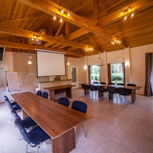 Конференц-зал гостиничного комплекса «Хижина» хорошо подходит для деловых мероприятий различного вида: бизнес-, пресс,- веб- и научных конференций. Зал одинаково хорошо подходит как для небольших конференций, так и для масштабных мероприятий с большим количеством участников.