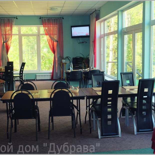 В гостевом доме Дубрава есть просторный и уютный банкетный зал с обширным видом на живописное озеро и летней верандой.