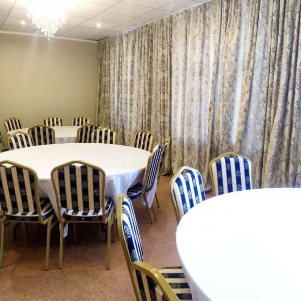 Небольшой, светлый банкетный зал с отдельным входом подойдет для празднования камерного дня рождения, юбилея или другого небольшого торжественного мероприятия. Дополнительно предоставляются: звуковое оборудование, проектор, ноутбук.