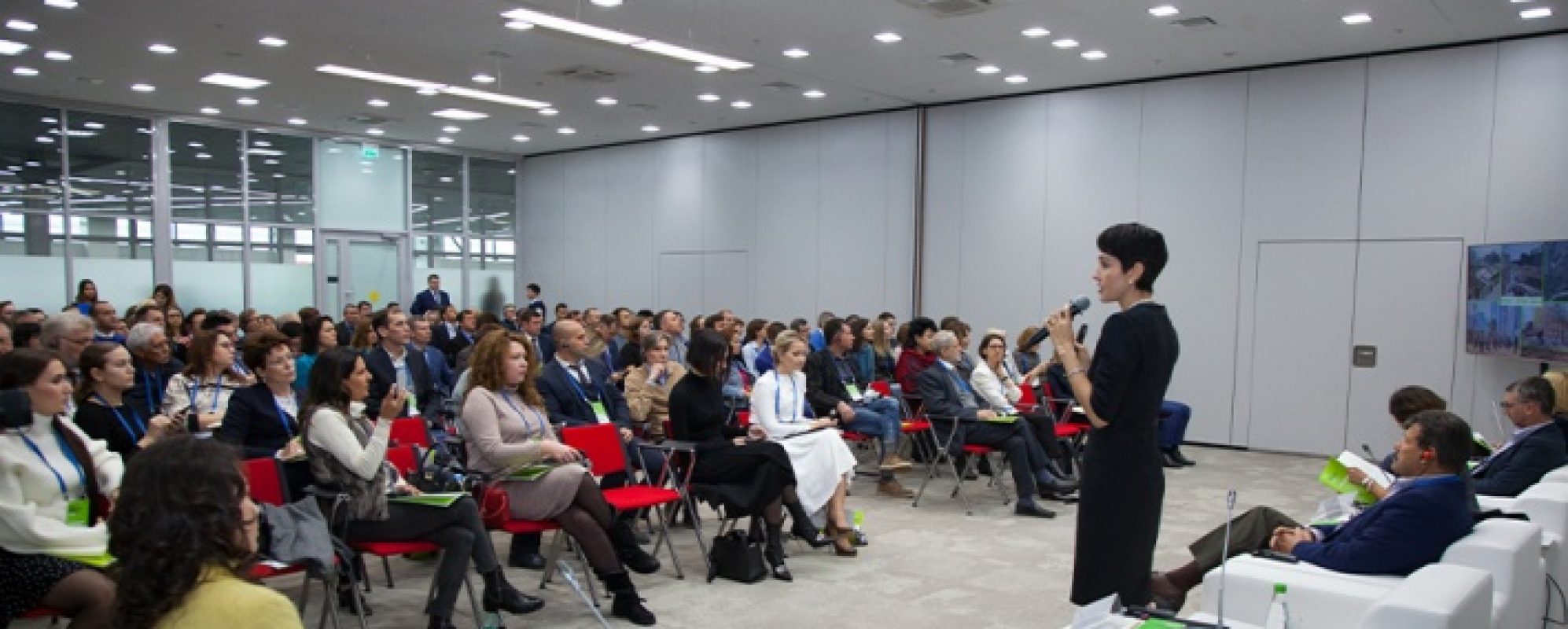 40 конференц-залов вместимостью от 15 до 650 посадочных мест расположены на 1-ом и 2-ом этажах выставочного центра. Площадь залов меняется от 53 до 840 м² при помощи звукоизоляционных перегородок для проведения мероприятий в любом формате. Предусмотрены различные варианты рассадки.