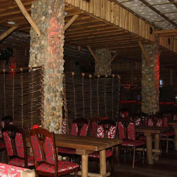 Банкетный зал на 190 посадочных мест, выполнен из деревянного сруба, имеет мобильные перегородки.