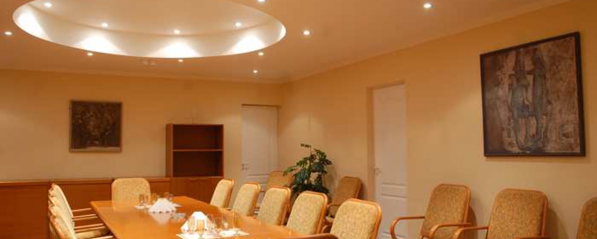 Зал, рассчитанный на 20-30 человек, идеален для камерных мероприятий. «Овальный» стол на 25 человек оптимален для проведения деловых переговоров, небольших пресс-конференций, семинаров. Дополнительные кресла позволяют разместить в зале до 35 человек.