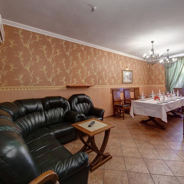 Зал прекрасно подходит для проведения семейных торжеств, переговоров, деловых обедов и ужинов.