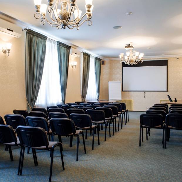 К вашим услугам: уютный конференц-зал, вмещающий до 50 персон, идеально подходит для проведения семинаров, тренингов и конференций. Для удобства гостей возможны разные варианты расстановки мебели.