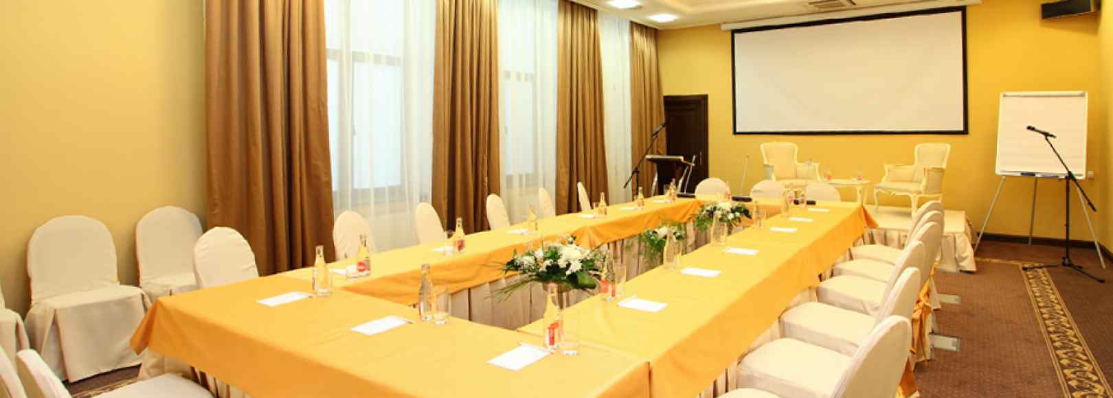 Гранд-отель «Александровский» располагает уютным и просторным конференц-залом, оборудованным всем необходимым для проведения делового мероприятия на высоком уровне.