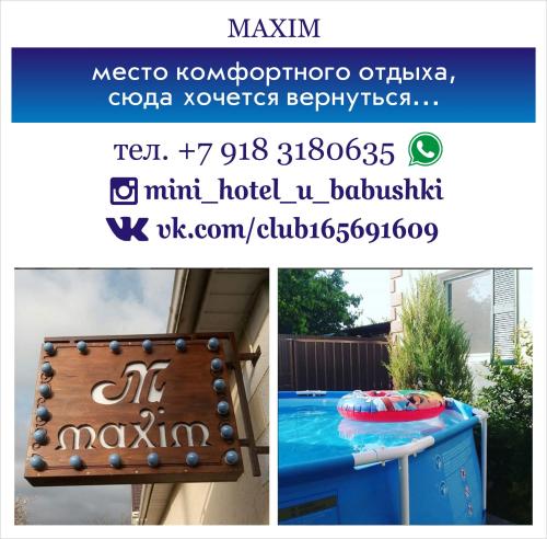 Гостевой дом Максим расположен в городе Анапа. К услугам гостей принадлежности для барбекю, сад, бесплатный Wi-Fi, 4 номера различной ценовой категории с кухней и собственной ванной комнатой, а также терраса с видом на бассейн. Номера гостевого дома Максим располагают патио, шкафом для одежды и телевизором с плоским экраном. В окрестностях популярны велосипедные прогулки. В гостевом доме организован прокат велосипедов. Сотрудники гостевого дома Максим всегда готовы помочь советом на стойке регистрации.