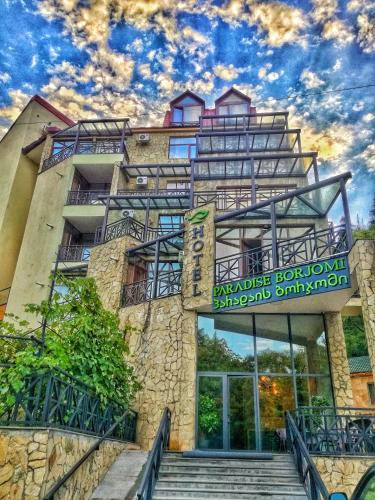 Гостиница Paradise Borjomi с террасой и общим лаунджем расположена в поселке Боржоми, в 26 км от Бакуриани. К услугам гостей круглосуточная стойка регистрации, 23 номера различной ценовой категории, трансфер от/до аэропорта, доставка еды и напитков в номер и бесплатный Wi-Fi. В числе удобств номеров кондиционер, телевизор с плоским экраном и спутниковыми каналами, чайник, гидромассажная ванна, бесплатные туалетно-косметические принадлежности и письменный стол. Из некоторых номеров открывается вид на реку. Во всех номерах есть балкон. В каждом номере гостиницы Paradise Borjomi обустроен гостиный уголок. Каждое утро для гостей сервируется завтрак «шведский стол».