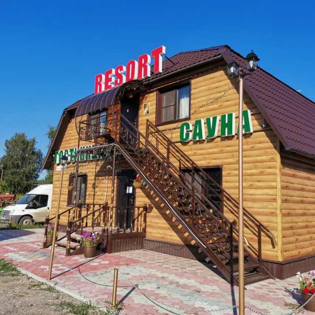 Гостиница Resort находится на окраине посёлка. На первом этаже расположена сауна с басейном. В каждом номере имеется телевизор,чайник,полотенца,вай-фай присутствует. 2 общих туалета с душем,только в номерелюкс туалет и душ в номере.