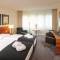 Отель принадлежит сети AccorHotels, удачно расположен в зеленом районе Швабинг, до метро – метров 100, на метро до Мариенплатц – минут 10. Добираться от/до аэропорта крайне удобно: на шаттле Люфтхансы (ходит каждые 20 минут) за 17 Евро (билет в оба конца с открытой датой), время в пути – минут 30, остановка в 5 минутах ходьбы от отеля. Поблизости среди деревьев (видели белок из окна номера) имеется зона отдыха с большим открытым бассейном, а также небольшой пруд. На противоположной стороне Унгерштрассе в 10 минутах ходьбы – вход в английский сад, который тянется на многие километры, можно гулять хоть весь день. В пределах доступности (до 15 минут пешком) два традиционных немецких ресторана и один итальянский, совсем под боком кафешка с булочками и продуктовый магазин. В самом отеле имеется ресторан (гостям дают ваучер на однократную 10 процентную скидку), который конечно обходится подороже, но он того стОит – готовят лучше. Во внутреннем дворике расставлены шезлонги, в которых можно загорать, попивая напитки из бара. При отеле есть небольшой тренажерный зал, сауна, прокат велосипедов и зонтов, бесплатный wi-fi для членов клуба. Завтрак дорогой (24 евро), но очень разнообразный, блюда вкусные. Номера (у нас был 315) с маленькими балкончиками (круглый столик и 1 – 2 стула), есть чайник, гладильная доска с утюгом, холодильник, сейф. Уютно, чисто, комфортно, довольно тихо. Правда, при открытых окнах иногда чувствовался запах дыма от гостей, выходивших покурить на крыльцо отеля. Общее впечатление – сугубо положительное :-)Небольшие «минусы» связаны в основном с человеческим фактором: приехали рано, сдали чемоданы на хранение, нам обещали приготовить номер и отнести в него чемоданы. Когда пришли в готовый номер, чемоданов не оказалось. Позвонили на ресепшн – обещали принести. Надоело ждать, пошел сам, нашел ответственного, пошли с ним в камеру хранения, и я сам забрал оттуда наши чемоданы и отнес в номер. Вот такой сервис. В другой раз пришлось вызывать горничную для уборки номера (обычно убирали с утра, часов до 11, а тут мы вернулись усталые в 3 дня, а номер без изменений, не расслабишься). Пришлось сидеть в ресторане пить пиво, пока она убиралась. Зато через час еще одна пришла наводить порядок :-)И последнее: с каждым годом Мюнхен все больше становится мусульманским городом, куда семьями приезжают на шопинг арабы. Поэтому их присутствие характерно в большей или меньшей степени для всех отелей и магазинов (особенно для Максимилианштрассе с его бутиками). Так что будьте готовы к большому количеству женщин в паранжах, накрашенных девушек в национальных одеждах, а также стайкам арабских детей, как будто впервые дорвавшихся до цивилизации, которые шумно носятся по коридорам, катаются на лифтах, бегают вокруг отеля, постоянно играют в игры на компьютерах, предназначенных для общественного доступа (пришлось сгонять) и тп. Если указанное Вас не отпугивает, данный отель практически по всем параметрам является вполне хорошим местом для отдыха.