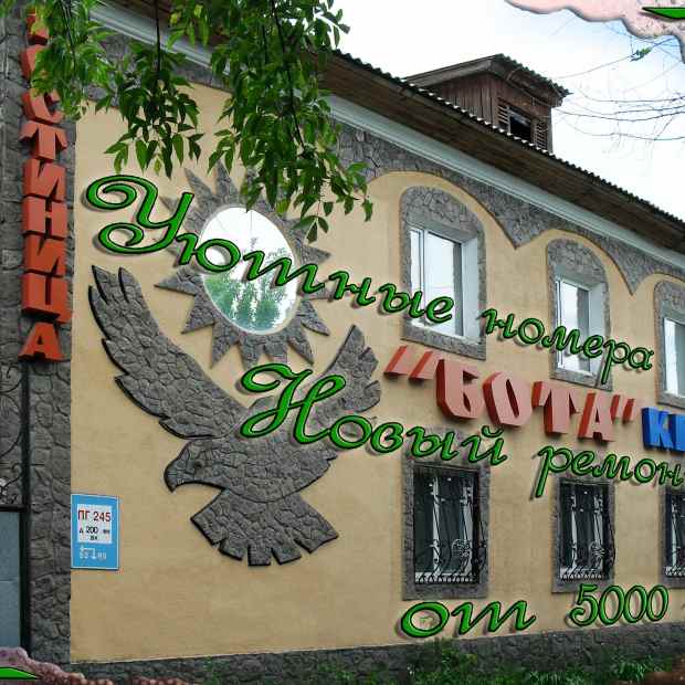 Останавливались в гостинице Бота в октябре 2015 года, были проездом. Встретили нас хорошо (мы приехали в полночь). При оформлении номера потребовали оставить у них в залог наши российские загранпаспорта и это при том, что мы сразу оплатили им (как они назначили) суму за половину суток?! Нашему удивлению не было предела! Мы их быстро отговорили от этой глупости, прямо указав на незаконность данного требования, т.к. паспорта у граждан могут забрать только полицейские и то в определённых ситуациях. Нас было трое - семья, просили самый дешевый номер только переспать ночь. Нам дали 2-хкомнатный номер на 2 этаже (2 смежные комнаты и ванная). Интерьер номера простой, мебель не поломанная, есть ТВ и телефон. Ванная комната большая и очень холодная - там нет ни сушилки, ни радиатора. Вообще, эта гостиница расположена в 2-хподъездном 2-хэтажном бывшем жилом доме. Им пришлось делать перепланировки. Главным плюсом гостиницы я считаю собственную парковочную площадку во дворе, есть где оставить автомобиль.Когда горничная отперла нам номер, ключ она нам не отдала, сказала "так надо, ключ будет на ресепшене". "А как же нам тогда запереть на ночь дверь? - Да там в дверной ручке маленькая пимпочка, поверните ее и все!" - сказала мадам горничная. Мы сильно напряглись, т.к. в гостинице ошивались какие-то подозрительные люди титульной национальности. Ладно, есть 2-я дверь в спальню - запрем ее на имеющийся шпингалет, а если что - будем прыгать вниз с окна. Вам смешно? Нам было не до шуток, с нами был ребенок 7 лет и очень хотелось спать. Но не тут-то было: шпингалет не совпадал с петелькой на дверном косяке и закрыть его было невозможно, перепад уровней был 3 см!!! Мы поняли, что мы "попали". Ночью, когда мы уснем, нас спокойно могут отпереть и взять еще тепленькими... Но делать было нечего, деваться нам было некуда и мы легли спать. Долго мы вслушивались в шумы за дверями (двери тонкие, внизу большие щели), потом усталость победила и мы задремали. Утром мы не спешили - у нас время оплачено до 12 дня. После мы спокойно уехали. Выводы делайте сами.