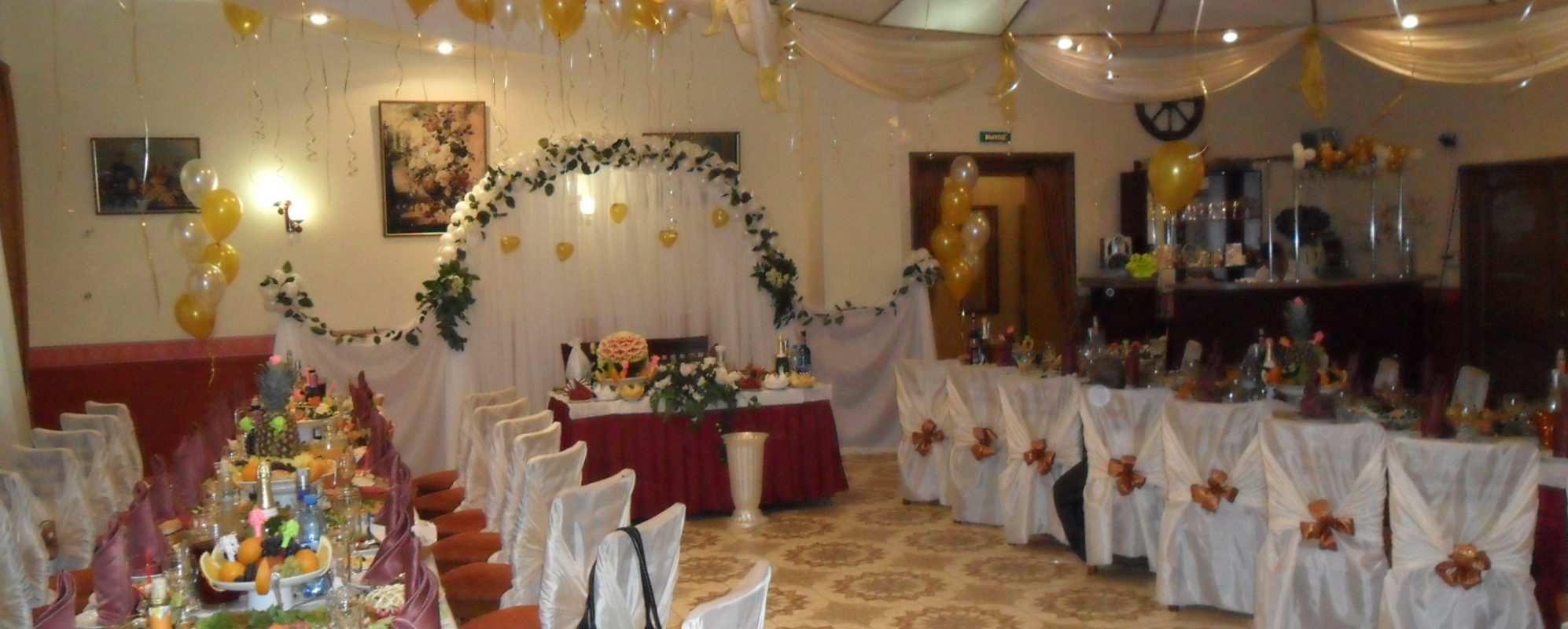 Также мы можем предложить ВАМ профессиональных и недорогих оформителей зала шарами и другими материалами.