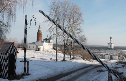 Чердынская застава перед Успенской церковью - одна из достопримечательностей города Чердынь. Современная реконструкция заставы, располагавшейся на Чердынском (Вишерском) тракте, установлена 2011 году на том же месте, где находилась в прежние века (при въезде в город со стороны Троицкого городища - Троицкого холма). Воссоздан пропускной пункт с черно-белыми столбами. Другое название название - Государева (Бабиновская) дорога соболиной казны - являлась первым торговым трактом в Сибирь и активно использовалась до 1597 года .