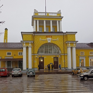 Здание железнодорожного вокзала расположено в центре города Луга. Оно было построено на месте старого каменного вокзала в 1944 году по проекту архитектора Давида Бурышкина. Железнодорожная станция является конечной остановкой для некоторых пригородных поездов. Здание вокзала оборудовано залом ожидания и билетными кассами. Рядом с ним находится автобусный вокзал, с которого отправляется большое количество маршрутов в разные направления. Железнодорожная станция - самая последняя со стороны областного центра, которую снабдили электричеством. Линия напряжения заканчивается в 200 метрах после платформы.