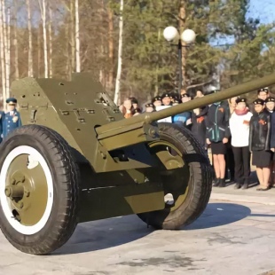 Боевая противотанковая 45-мм пушка установлена 7 мая 2015 году в Сквере Победы. Собрана из различных частей, найденных в экспедициях под Великим Новгородом, где во время войны проходили ожесточенные бои. В начале войны данная модель орудия была основой советской противотанковой артиллерии. А в дни Сталинградской битвы на их долю приходилось до 43% всех орудий, состоявших на вооружении истребительно -противотанковых полков.
