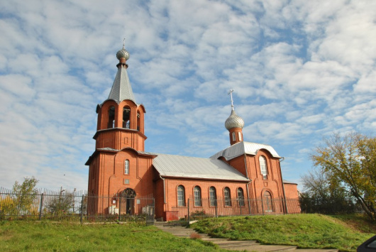 Кирпичная церковь построена в 1994-1996 у места разрушенной Трехсвятской церкви. Одноглавый трехапсидный четверик, вытянутый вдоль поперечной оси, с трапезной и шатровой колокольней.