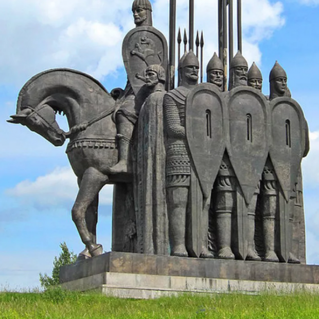 Разгром тевтонских рыцарей войском Александра Невского на льду Чудского озера был увековечен в Пскове в виде памятника, открытого в 1993 году в честь 1090-летия Пскова. Монумент установлен на горе Соколиха, удалённой почти на 100 км от предполагаемого места сражения. Сооружение на историческом месте битвы скульптурного памятника, в то время посчитали нецелесообразным, т.к. остров удален от населенных пунктов, и памятник оказался бы без надлежащего надзора. Но тем менение, Псков непосредственно связан с нашествием Тевтонских рыцарей, во время которого в 1240 году был взят Кром, ворота которого через неделю осады предательски открыли их сторонники из псковских бояр. После знаменитой победы над тевтонскими рыцарями в 1242 году, Александр Невский посетил Псков и оставил псковичам знаменитую «грамоту Александра». Так же при выборе места расположения памятника учитывалось, что гора Соколиха находилась на пути следования войск Александра Невского. Скульптурами проекта выступили И.И. Козлов и П.С. Бутенко. При высоте в 30 метров статуя имеет 163-тонный вес.