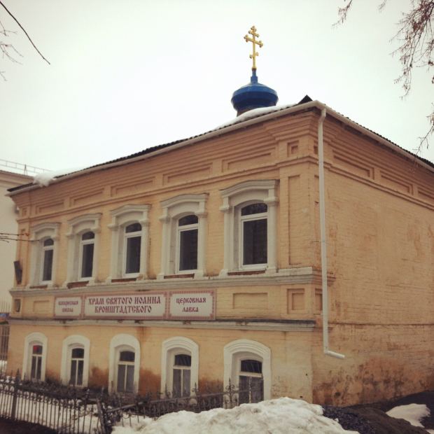Храм Святого праведного Иоанна Кронштадтского устроен в 1996-1997 гг. в кирпичном двухэтажном жилом доме конца XIX - нач. ХХ вв., принадлежавшем до революции купеческой семье купца Бороздина. В 1997 году в старом купеческом особняке разместился храм, по инициативе прихожан названный в честь и память святого Иоанна Кронштадского. Внешне храм выделен главкой. На втором этаже храма располагаются Воскресная детская школа, библиотека.