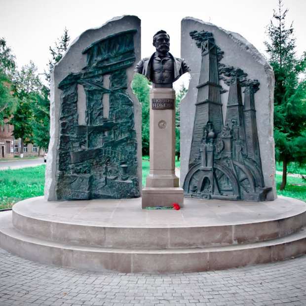 Памятник Людвигу Нобелю, старшему брату и деловой партнёру знаменитого учредителя Нобелевской премии Альфреда Нобеля, установлен в Рыбинске. Более полутора веков назад в Рыбинске братья Нобели – Роберт, Людвиг, Альфред – организовали товарищество нефтяного производства – сокращённо Бранобель. В городе функционировали нефтеперерабатывающий завод Нобелей, одна из самых величайших нефтяных баз. В 1886 году Людвиг Нобель стал инициатором и учредителем Русского технического общества, инициатором введения в России метрической системы мер, на создание эталонов которой он выделил необходимые деньги. Денежные средства он отпускал и для исследований Академии наук и Русского технического общества, финансировал школу железнодорожных мастеров и школу рабочих.