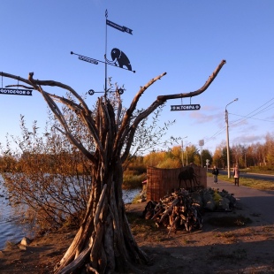 Арт-объект Верстовой столб установлен в 2015 году командой Архитекторы Тайболы. Верстовой столб представляет собой древнее раскидистое древо, увенчанное стальным флюгером, на ветвях которого висят три указателя: Солза, Малая Товра и Ворзогоры. Именно близ этих поморских деревень проходил фестиваль Тайбола с 2012-го по 2015-й год. Тайбола - культурно-экологический волонтёрский опен эйр фестиваль на берегу Белого моря, который проводится в середине лета в Архангельской области. Флюгер показывает направление ветра, и заодно указывает на возможное место проведения фестиваля.