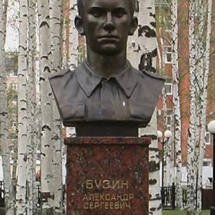 Бюст Александра Сергеевича Бузина, Героя Российской Федерации, погибшего при исполнении воинского долга в Чеченской Республике был установлен 7 ноября 2000 года. Александр призван в армию в 1994 году Советским районным военным комиссариатом Тюменской области. 20 мая 1996 года, рядовой Бузин со своей служебно-розыскной собакой убыл в рейд в тыл противника западнее Бамута, Ачхой-Мартановского района с целью обнаружения и обезвреживания минно-взрывных устройств. На следующий день, 21 мая, продвигаясь впереди группы, Александр Бузин осуществлял инженерную разведку местности. Обнаружив засаду боевиков, он первым открыл огонь, дабы тем самым предупредить следовавших за ним десантников и не допустить возможность внезапного нападения на группу. В ходе завязавшегося боя рядовой Александр Бузин погиб, была смертельно ранена и его собака Джон. Ценой своей жизни, он предотвратил гибель группы и обеспечил выполнение поставленной задачи. За подвиг, совершенный при разведке маршрута движения для десантно-штурмо-вой группы при выполнении спецзадания в Чеченской Республике, 18 ноября 1996 года награжден медалью Золотая Звезда Героя Российской Федерации посмертно.
