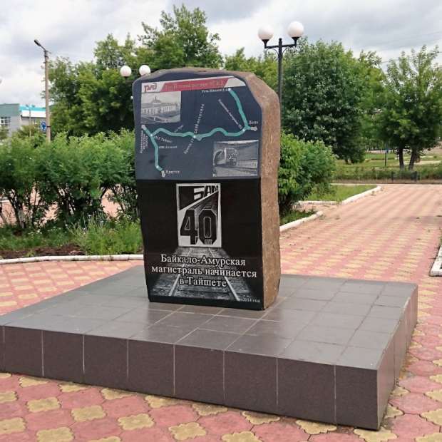Памятный камень к 40-летию строительства БАМа открыт 3 июля 2014 года. Именно отсюда идёт отсчёт магистрали, связавшей запад и восток Советского Союза. Это одна из крупнейших железнодорожных магистралей в мире. Проходит примерно в 610—770 км к северу от Транссибирской магистрали и параллельна ей. Основной этап строительства магистрали пришёлся на 1974—1984 годы, но начало строительства пришлось на довоенные годы. В 1932 году на строительство БАМа были брошены силы заключённых ГУЛАГа: построен Бамлаг, который позже был переформирован в шесть исправительно-трудовых лагерей. В строительстве железной дороги Тайшет — Братск принимали участие японские военнопленные (солдаты бывшей Квантунской Армии), а также немецкие военнопленные (были репатриированы на родину после визита в 1955 году в СССР канцлера ФРГ Конрада Аденауэра). Памятник стал не только очередным мемориалом Великой стройки 20 века, но и символом модернизации БАМа, которая должна завершиться к 2024 году.Город становится начальной точкой БАМа.
