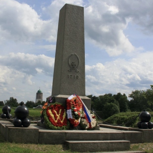 Памятный знак в виде стелы на острове Твердыш был установлен в 1910 году. Его открытие было приурочено к 200-летию со дня осады Выборга в Великой Северной войне. Место установки стелы было выбрано не случайно: именно на этом месте расположена братская могила павших русских солдат. Вокруг стелы установлены символичные пушечные ядра, а на постаменте нанесена надпись: "Русским воинам, павшим при взятии Выборга". После подписания Декларации независимости Финляндии стела была демонтирована, а восстановлена в виде точной копии в 1994 году.